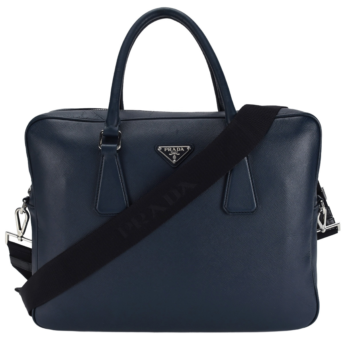 > プラダ PRADA ブリーフケース 2way ビジネスバッグ トライアングルロゴ レザー ネイビー ブラック ショルダーバッグ メンズ 中古