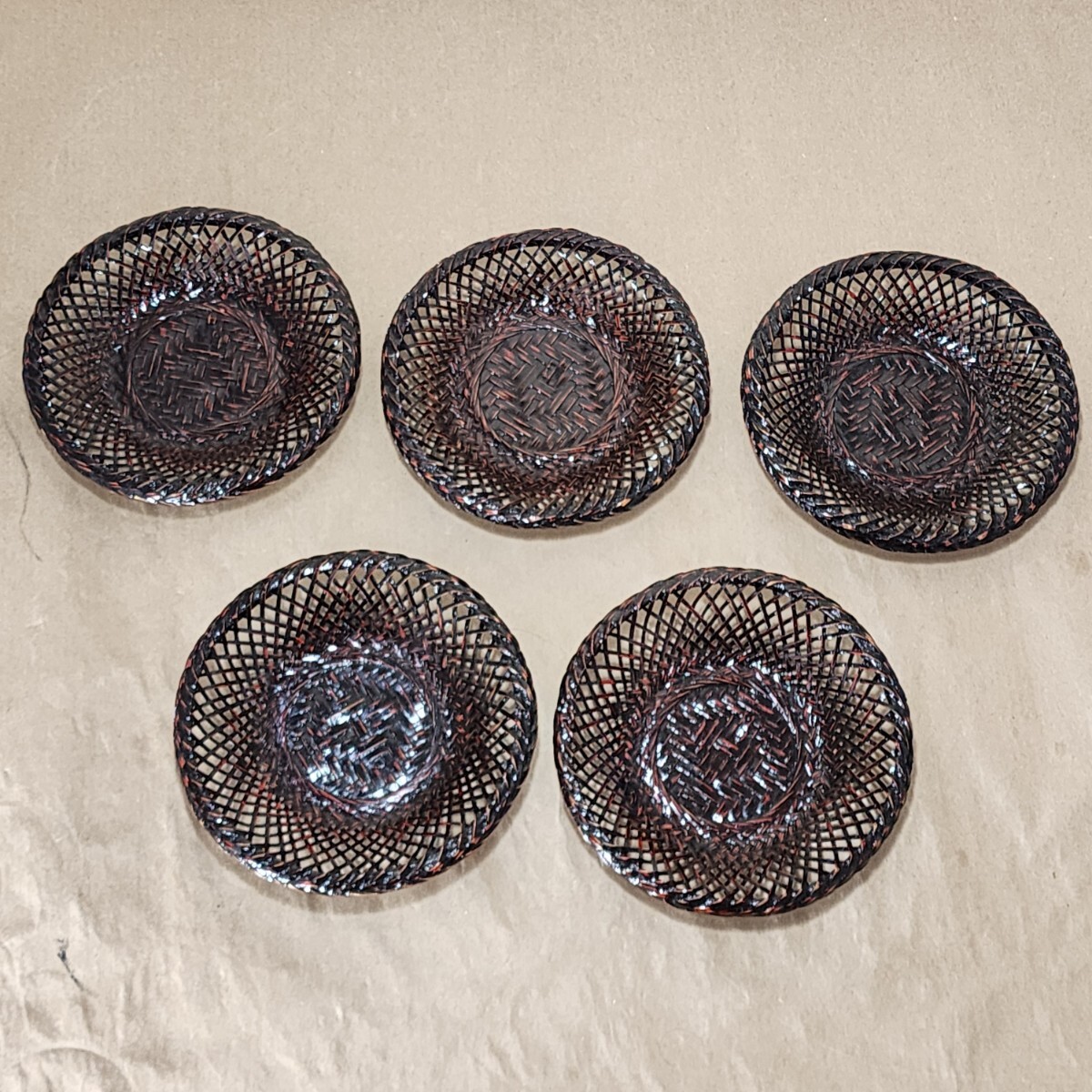 - 籃胎漆器 12cm茶托 5枚 天然竹製 未使用