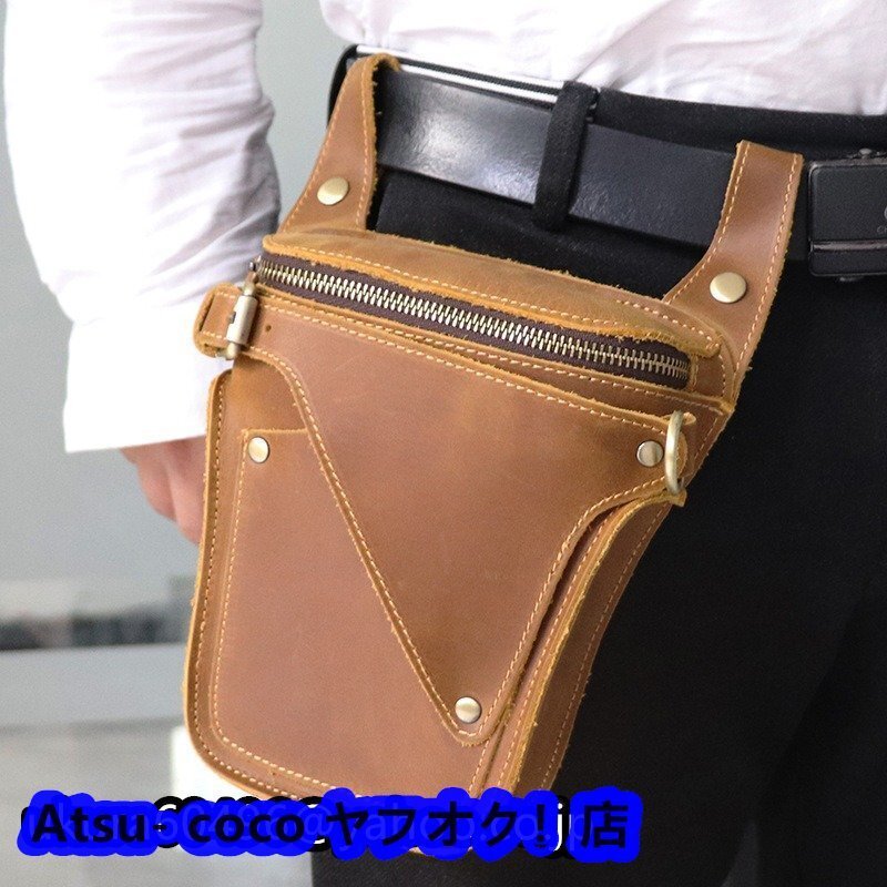 - ウエストバッグ メンズ 本革 2WAY ベルトポーチ スマホポーチ ミニショルダーバッグ ブラウン
