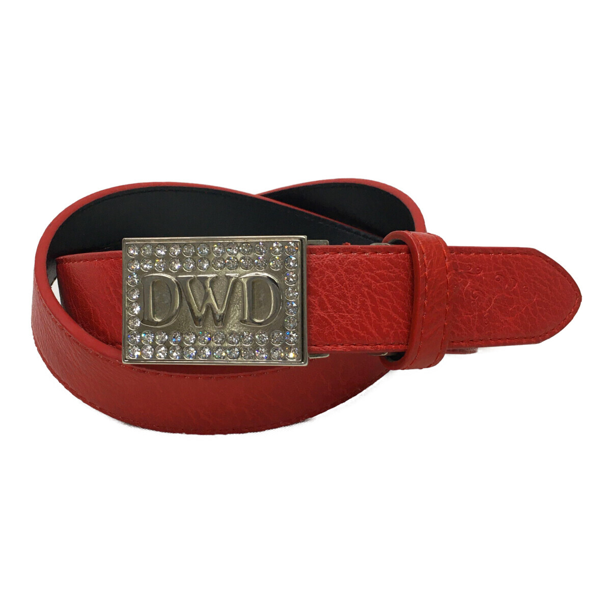 - coco 中古【値下げ】ダンスウィズドラゴン ベルト 赤 レッド ラインストーンバックル セレーション機能 レターパックプラス発送可 10121