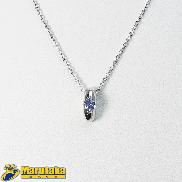 > 【K18WG タンザナイト ネックレス】ソーティング付 レディース ジュエリー 18金ホワイトゴールド プチネックレス 中古 19k225-37