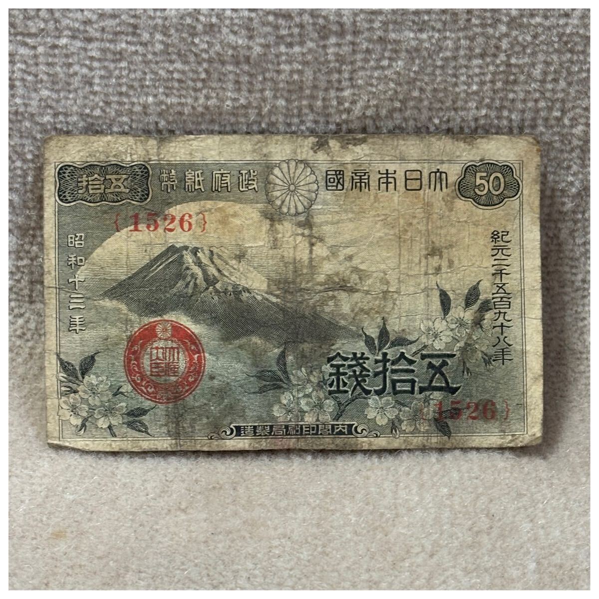 - 政府紙幣50銭(富士桜50銭) 1526組 印刷ズレエラー《102》