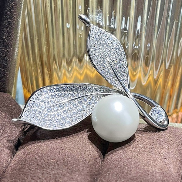 - 925スターリングシルバー 12mm 白真珠のブローチ、残り時間4日までに最初に入札すると開始価格で購入可能 Kn