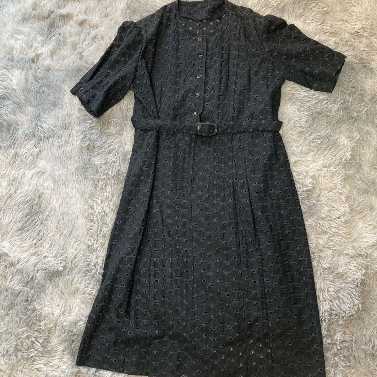 - 肩パッド付ベルト付きパンチング刺繍ワンピース黒L美品27