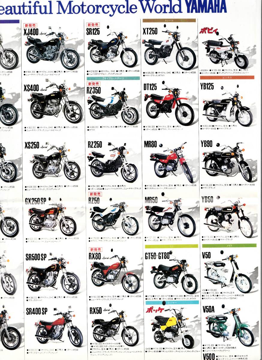 > YAMAHA チラシ バイク XV750/XJ400/RZ350/YB125/ポッケ/パッソル他 昭和56年(1981年) 当時物 ヤマハ発動機