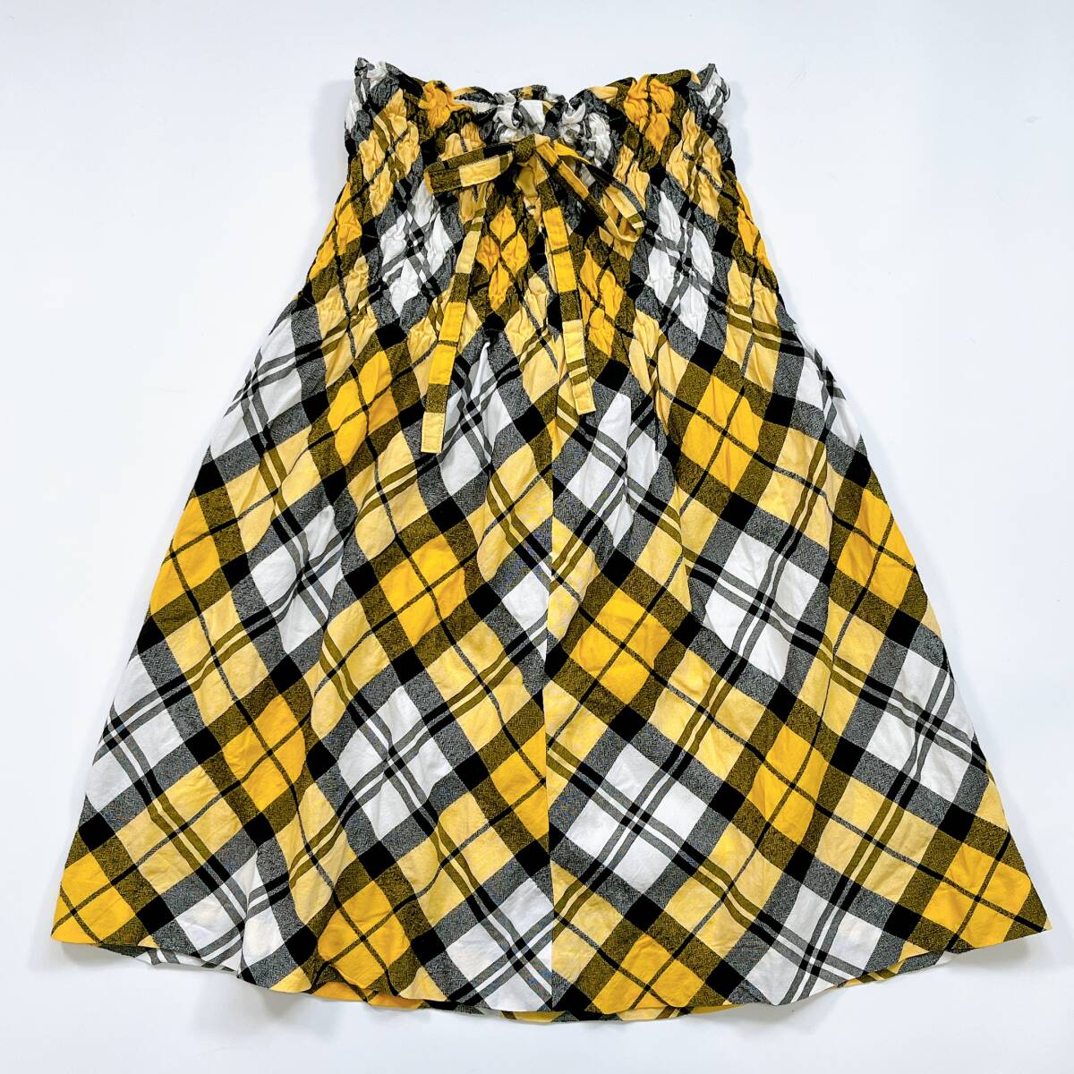 > YORKLAND ヨークランド 9 M スカート シャーリング チェック柄 イエロー×ブラック リボン 膝下丈 可愛い 日本製 ☆1002y