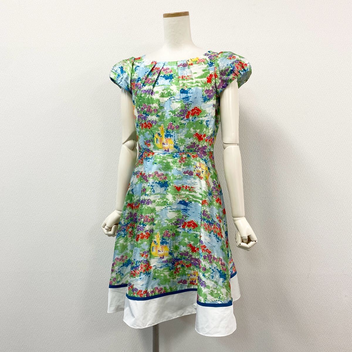 - Ag22《美品》日本製☆ M'S GRACY エムズグレイシー 花柄プリント フレンチスリーブワンピース ドレス 半袖 38 Mサイズ レディース グリーン