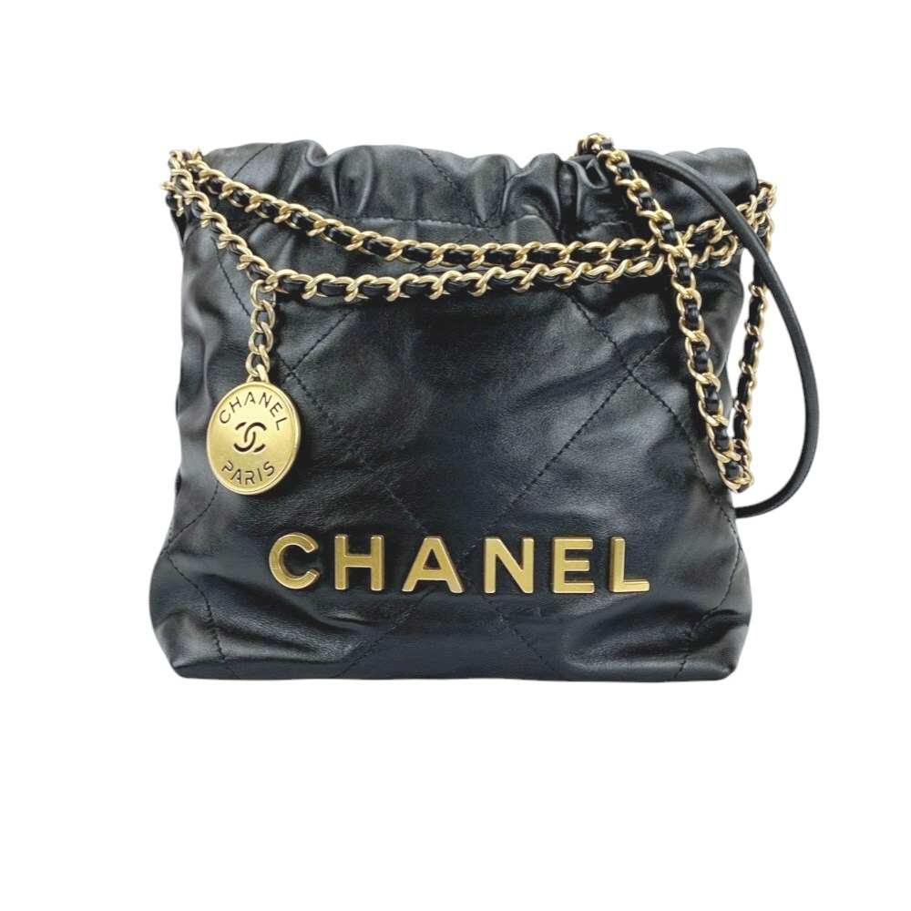 > ■美品■ シャネル 22 ミニ ショルダー ハンド バッグ 2WAY シャイニー カーフ ブラック 【386930】5