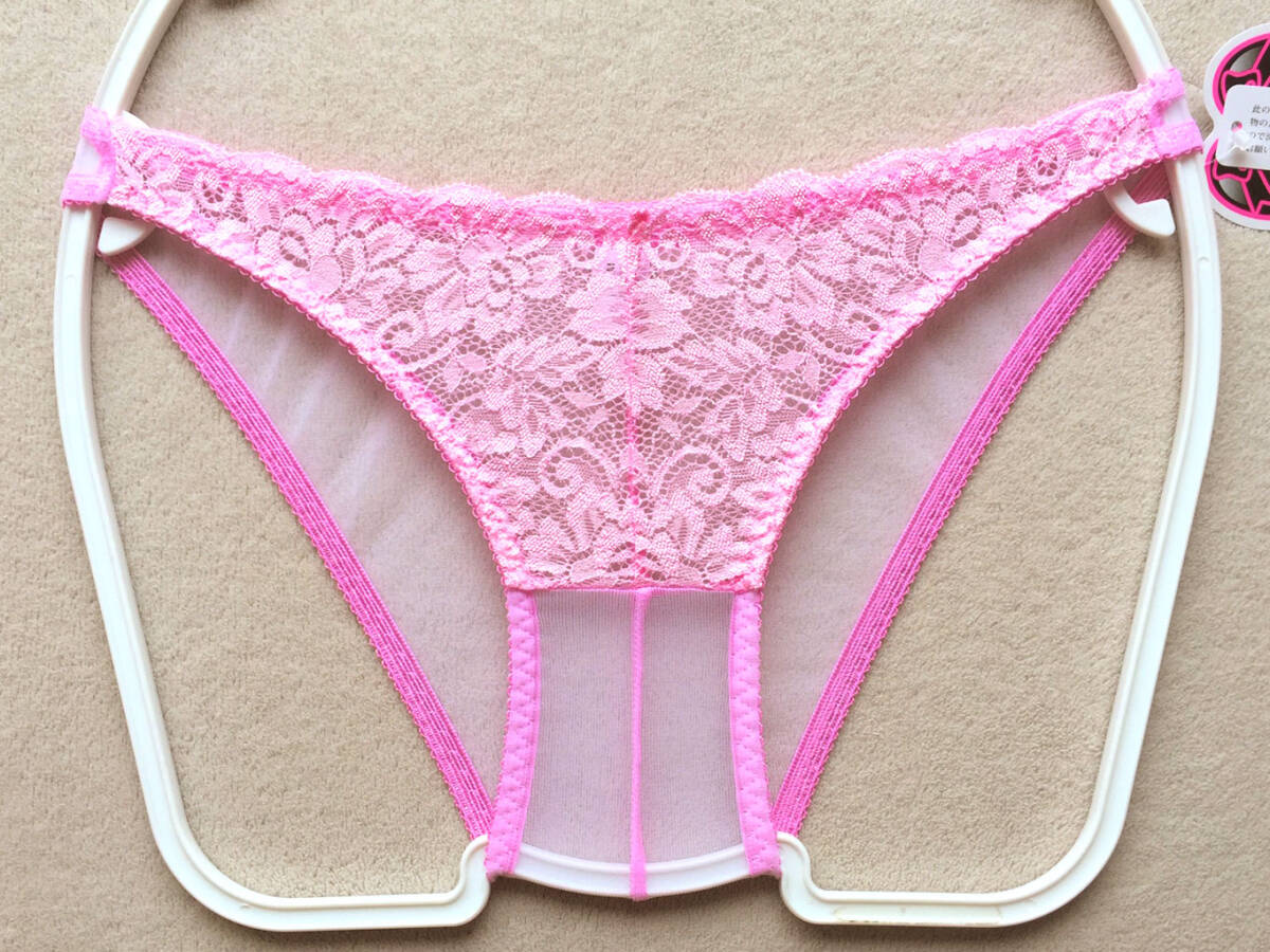 - 【ラ・ポーム/La-Pomme】くっきりセンターシーム♪お花刺繍レース&透け透けシースルー★浅履きフルバック/ピンク♪新品/日本製