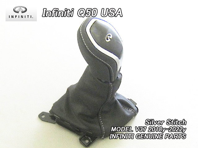- スカイラインV37セダン中期【INFINITI】インフィニティQ50純正USシフトノブ-ブーツ付/USDM北米仕様チェンジレバーLogoマーク&銀ステッチ