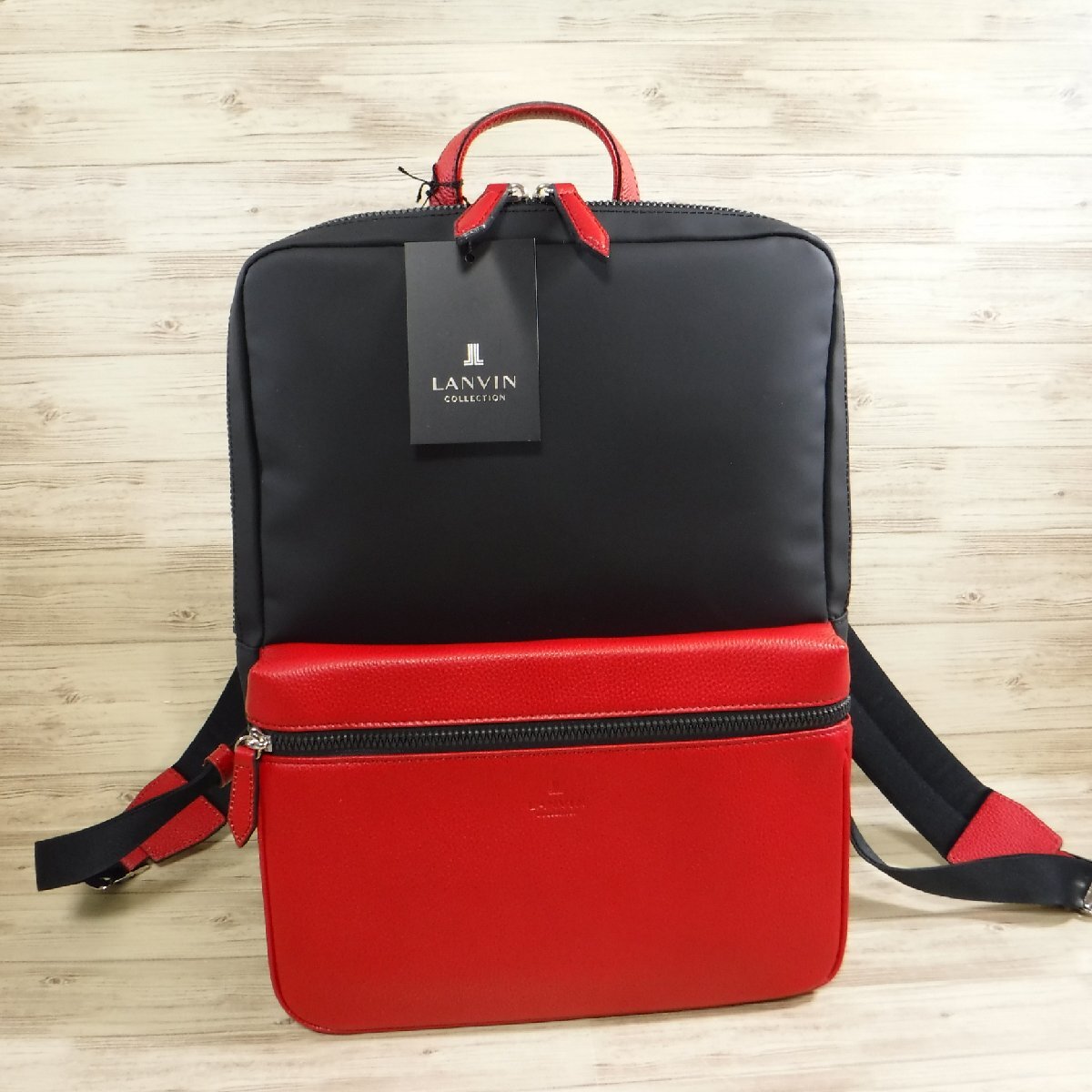 > BB549 ランバン コレクション LANVIN 定価38500円 新品 スクエア リュック 黒 × 赤 A4 高耐久撥水レザー 284711 ビジネスリュック エクラ
