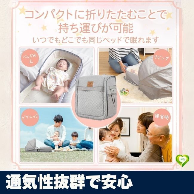 - 【通気性抜群で安心】ベッドインベッド 新生児 添い寝 折りたたみ式 クッション付き 高さ調整可 洗濯可能 持ち運び便利 人気 おすすめ