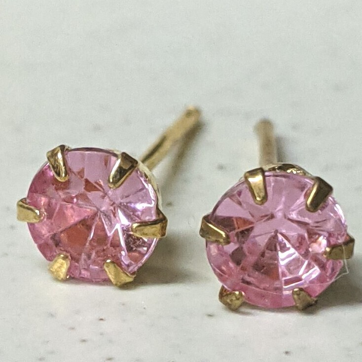 - ピアス 一粒 カラー ストーン ゴールド 立て爪 控えめ 両耳 両耳用 ピンク キラキラ ストーン 小粒 レディース 女性用 宝石 ビジュー