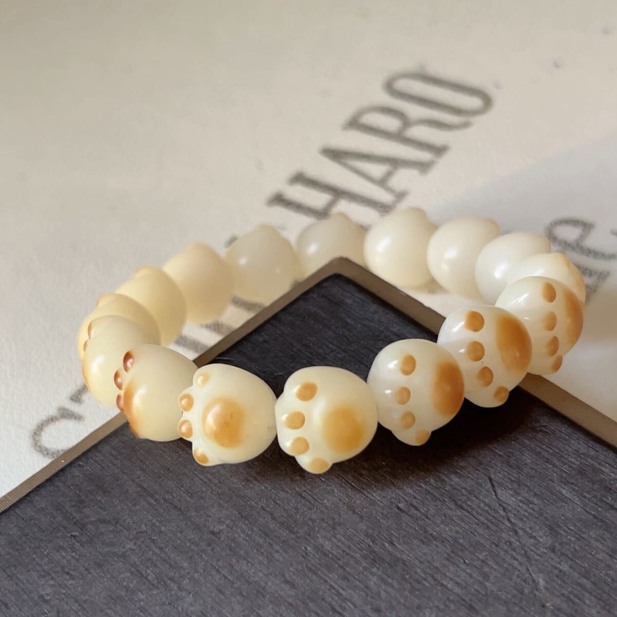 - ◇菩提樹の根◇白玉菩提◇猫の手形◇ブレスレット◇数珠◇念珠◇巾着袋つき◇プレゼントにも030B7237
