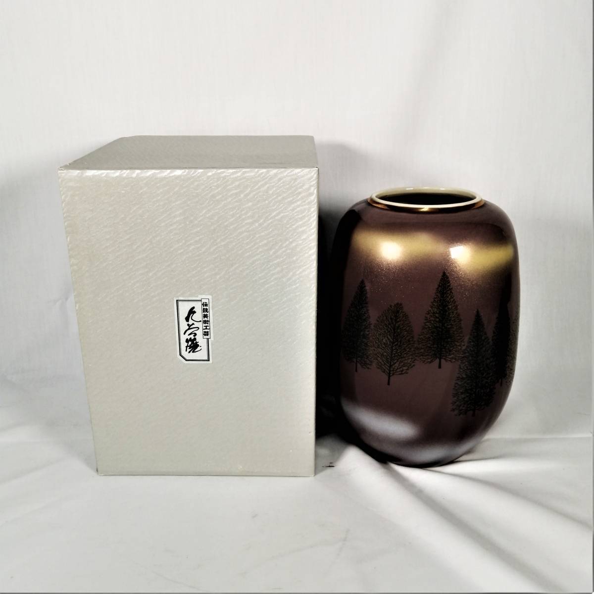 > 美品 九谷焼 花瓶 壺 陶勝窯 雲海の木々 金銀彩 陶勝 幻想的 絵画様【USED品】 22 00873