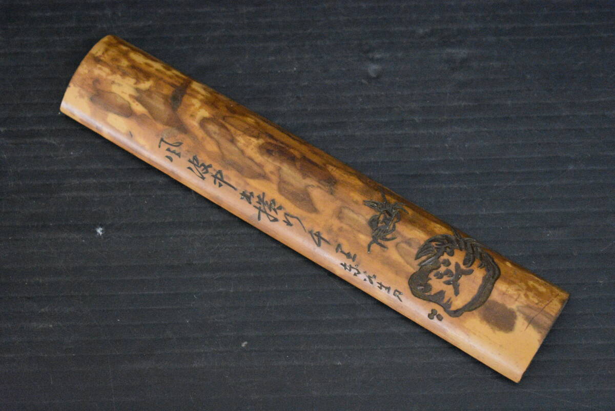 - うぶ品 時代物 在銘 古竹 漢詩蟹彫刻茶合 煎茶道具 古美術品