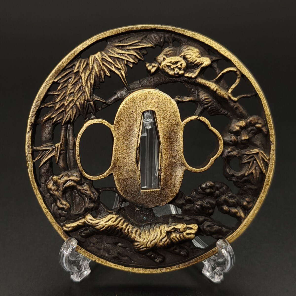- GK35 日本刀装具 刀鍔 竹林猛虎の図 合金製 刀剣美術 武道具