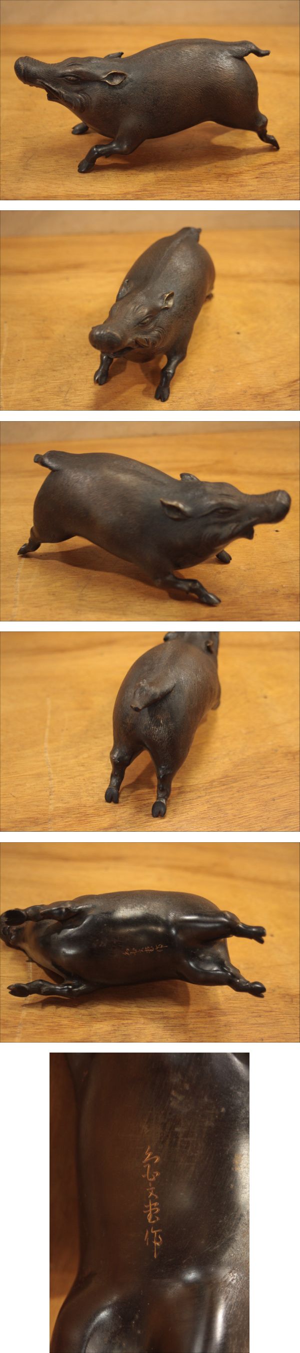 - ∇341 亀文堂 銅造 猪 工芸 置物
