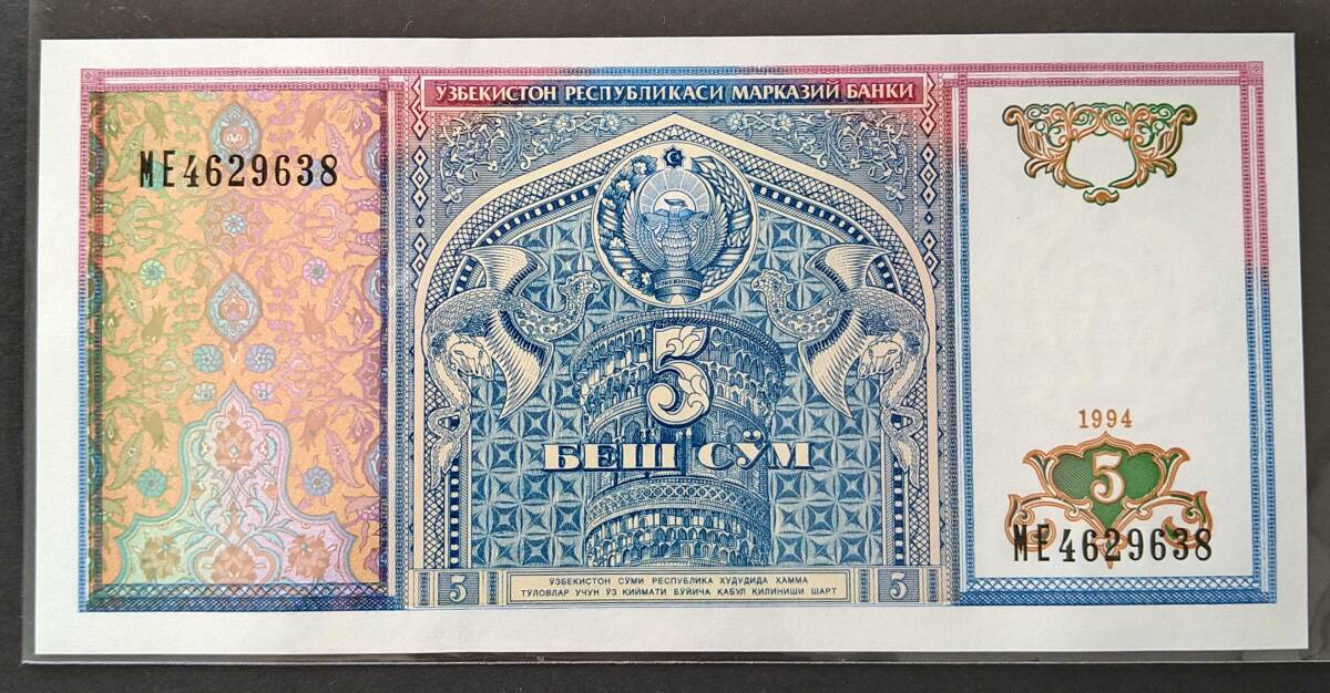 - ウズベキスタン・5スム紙幣(1枚)【中古】