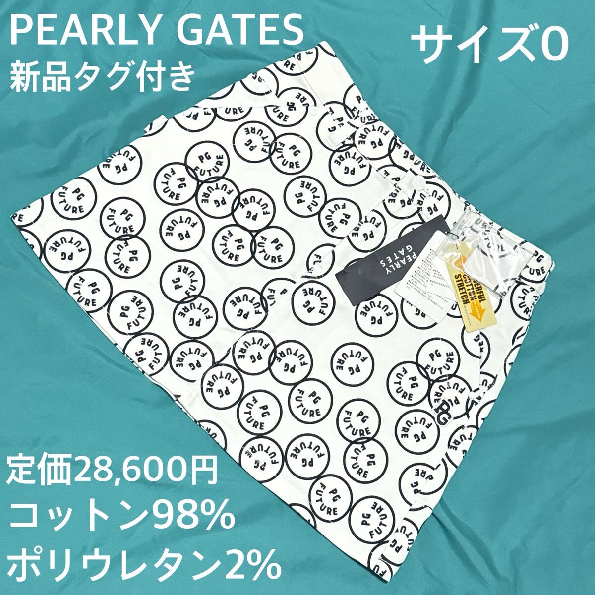 - 【新品タグ付】パーリーゲイツ 総柄 スカート 0 ゴルフ 春夏可愛い 白黒