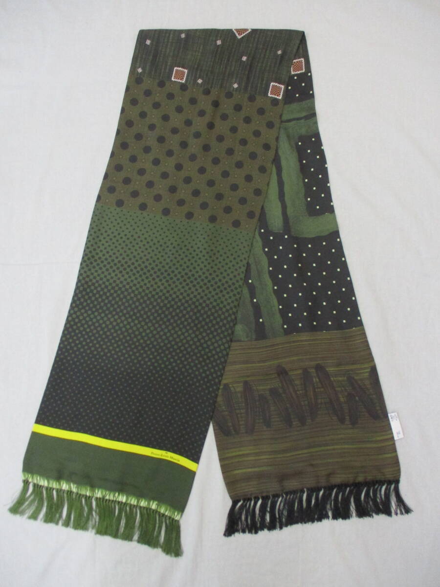 > PierreーLouis Mascia ピエール ルイ マシア ストール フリンジ グリーン系 100%SILK MADE IN ITALY