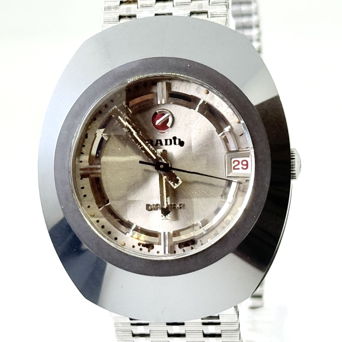 - M6543 ラドー ダイアスター 超硬 自動巻き AT 稼働品 3針 シルバー文字盤 デイト メンズ 腕時計