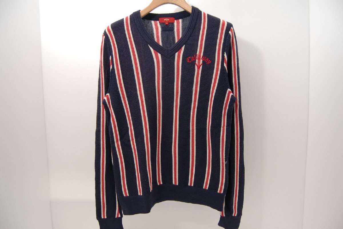- coco 中古【SALE】 キャロウェイ メンズ ニット M 紺×白 長袖Vネックセーター マルチストライプ レターパックプラス発送可 55982
