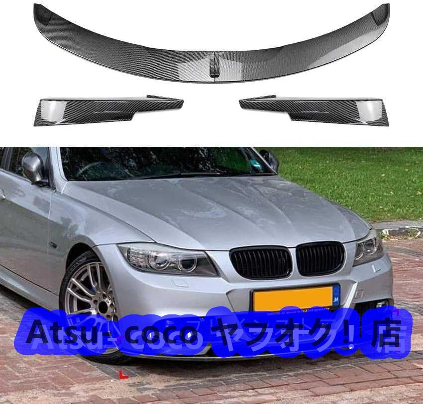 > BMW 3 シリーズ E90 E91 LCI M スポーツ 2009-2012 適用 フロント バンパー リップ スポイラー 3分割式 カバー トリム グレードアップ 傷防