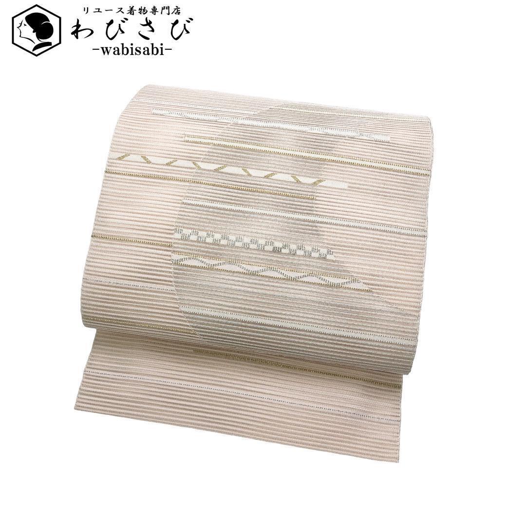 > 夏帯 名古屋帯 横段織模様 生成色 O-5148 着物 きもの kimono 和服 和装 中古 リサイクル着物 【送料無料】