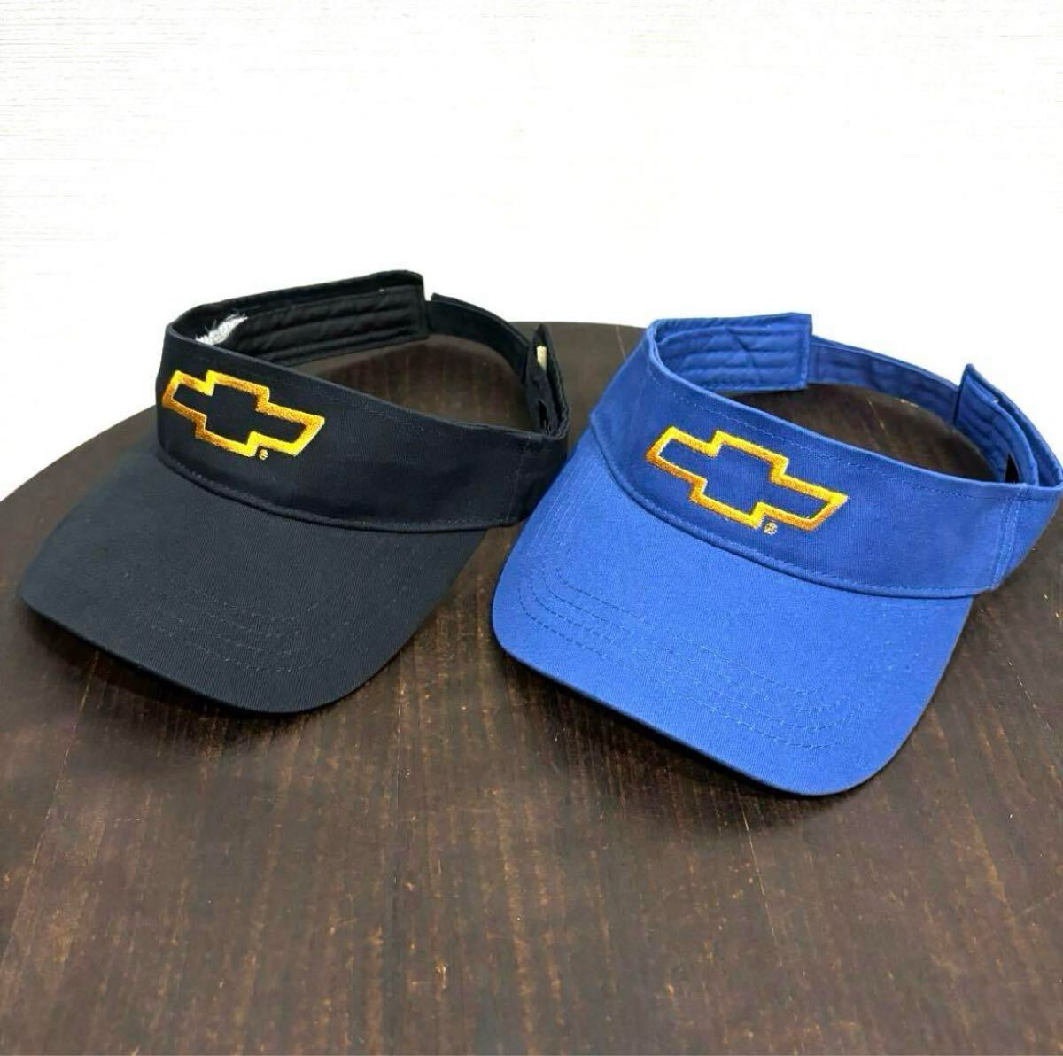 - 極美品 2点 黒青 ノースウエスト オハイオ シボレー ディーラー サンバイザー アメリカ USA 企業 自動車 ゼネラルモーターズ GM 帽子 古着