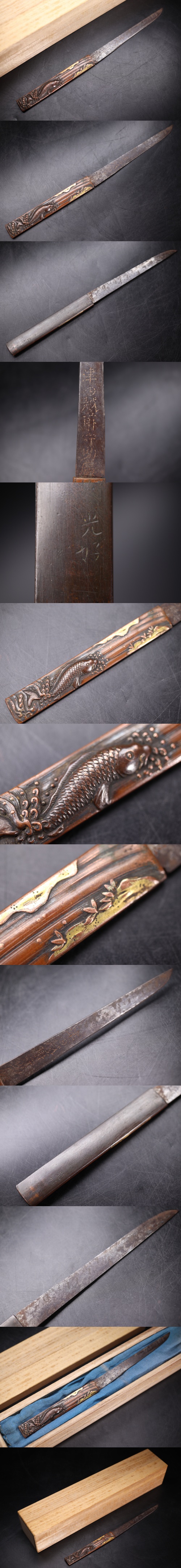 - 光好 在銘 鯉文 金銀象嵌 茶刀 木箱付 / 細密 茶器 煎茶道具 煎茶飾 .G2137