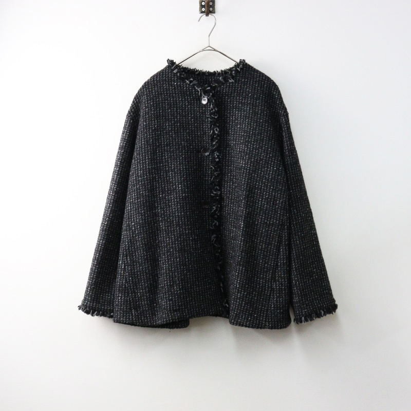 - 美品 定価50600円 ジャーナルスタンダード JOURNAL STANDARD AWツイードフリンジコート マフラー付き グレー【2400014526110】