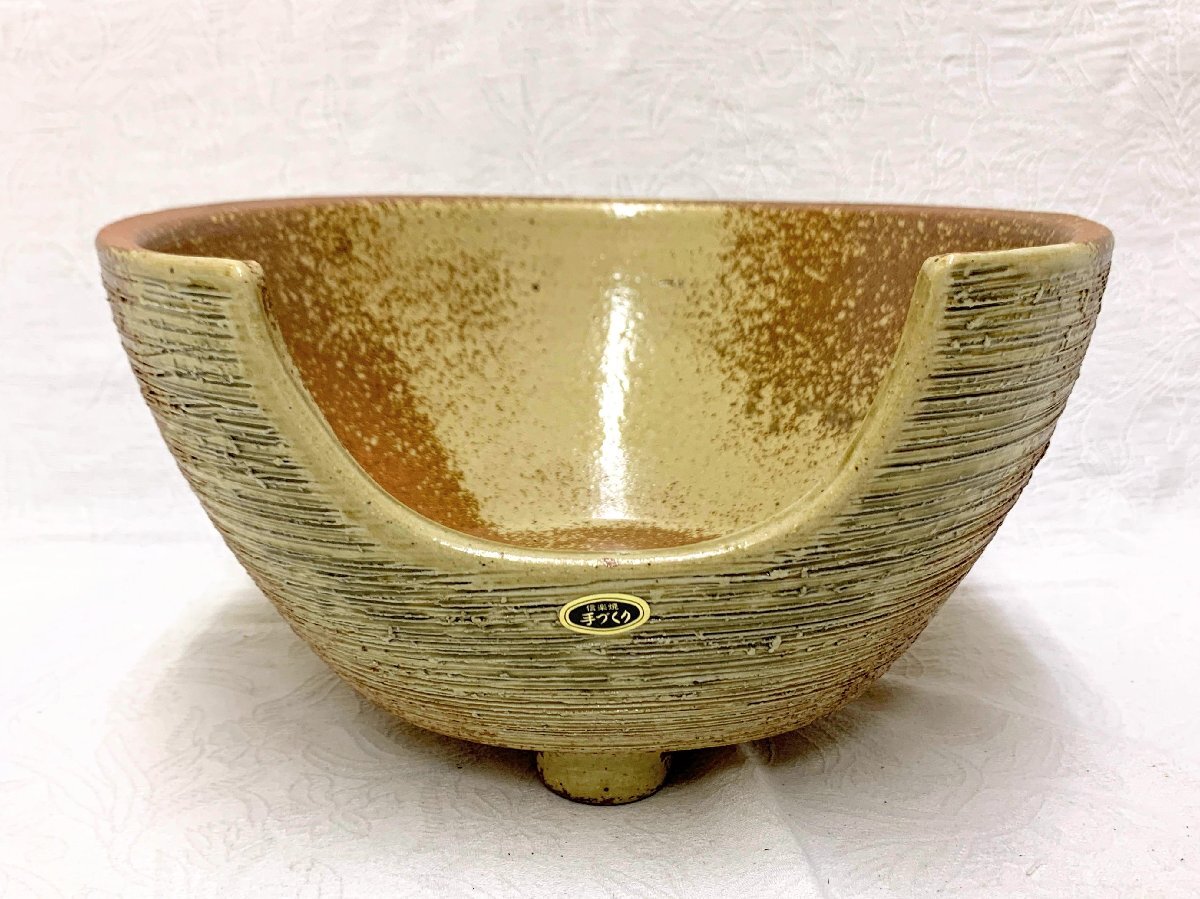 - 17586/信楽焼 紅鉢風炉 鉢型風炉 登山陶苑 未使用 茶道具 煎茶道具 茶室 炭道具 火鉢 手炙り 瓶掛