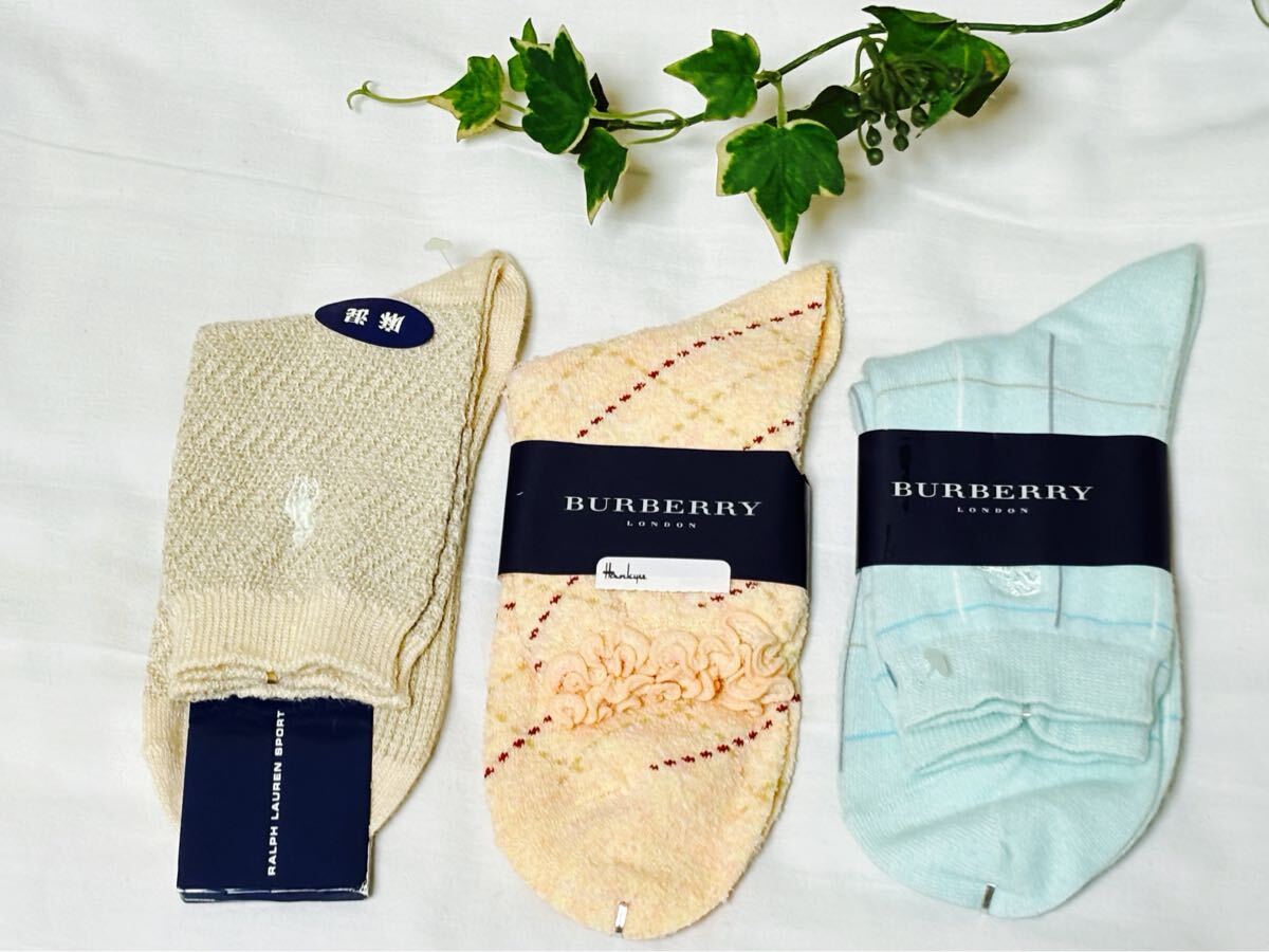 - ★未使用 BURBERRY バーバリー ラフルローレン RALPH LAUREN ショート ソックス レディース 3足セット 22232425★