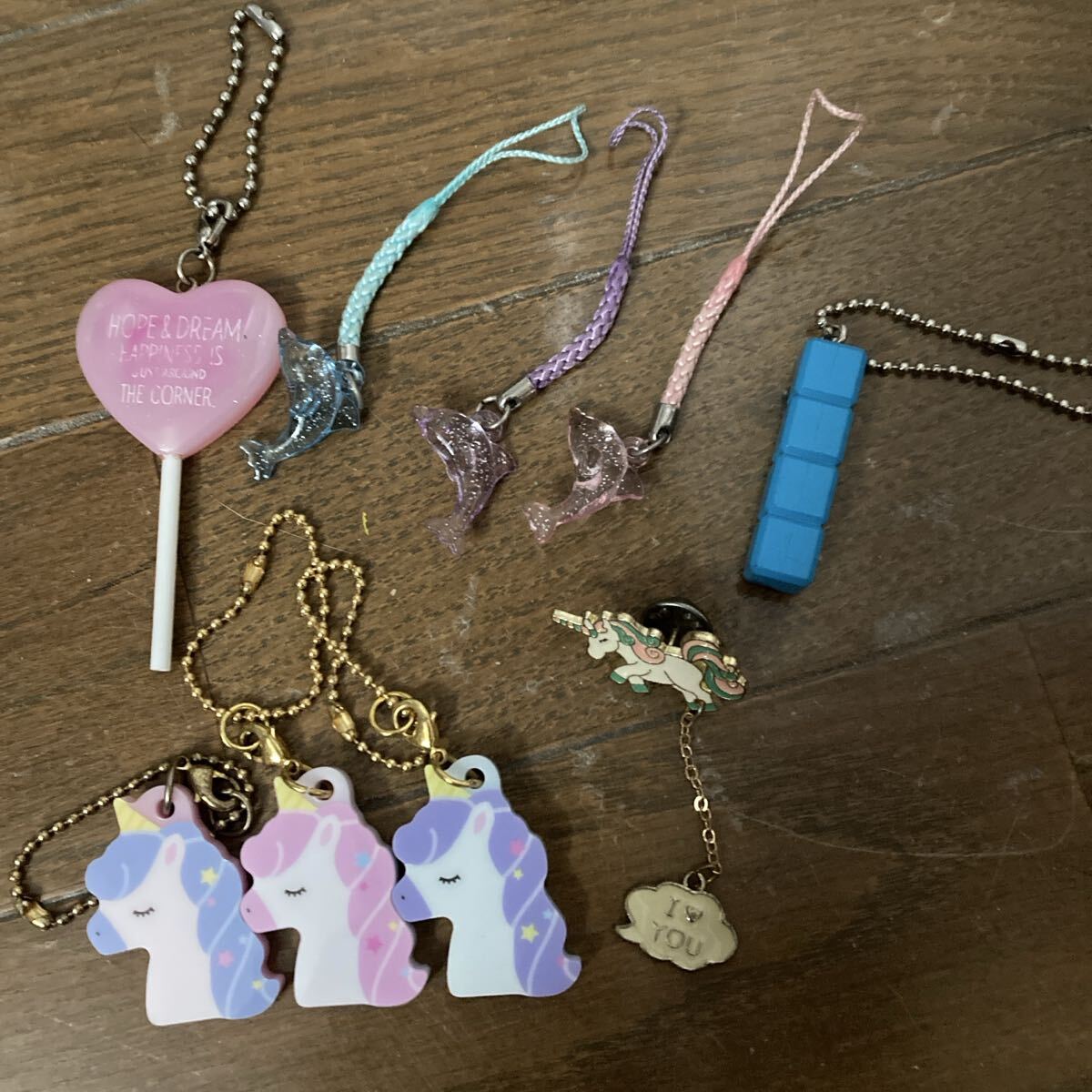 - ユニコーン イルカ 他 ボールチェーン ストラップ ピンバッジ