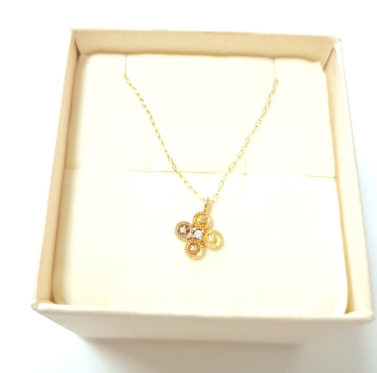 - 百貨店購入 K18 ダイヤモンド クローバー フラワー スター ネックレス