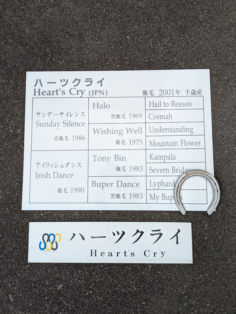 - ハーツクライ 実使用 馬房パネル 蹄鉄セット 名馬 血統表 競馬 ウマ娘 ディープインパクト 社台スタリオンステーション