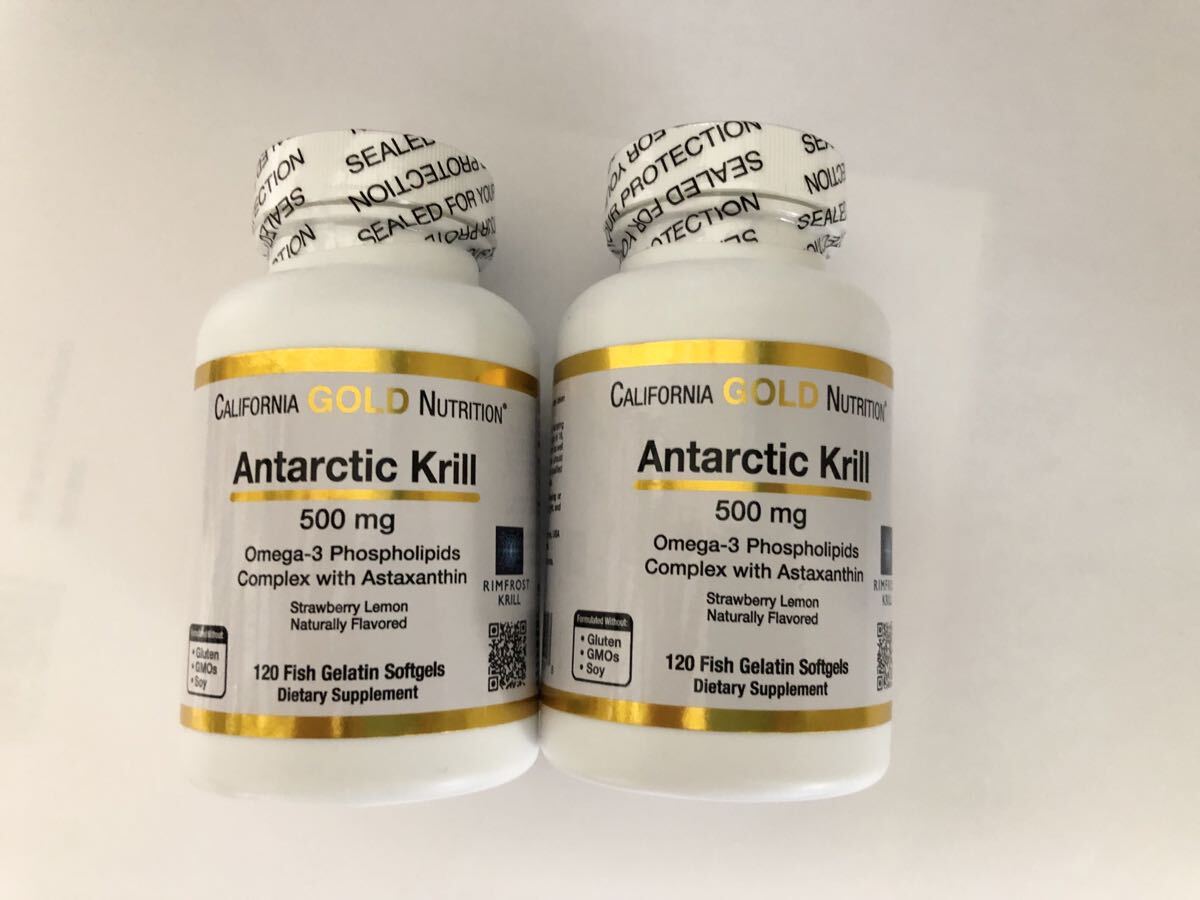 > 【2個 送料無料】南極クリルオイル Antarctic Krill 500mg 120粒 オメガ3 アスタキサンチンEPA DHA(ストロベリーレモンフレーバー CGN)