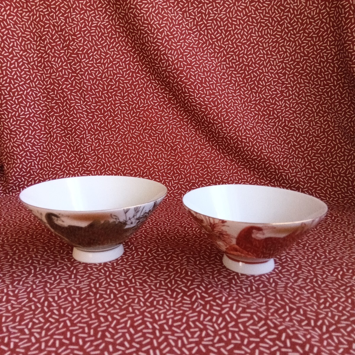 - 中古☆九谷焼 ご飯茶碗 夫婦茶碗 和食器 陶器 セット 飯碗 昭和 レトロ 鳥 孔雀