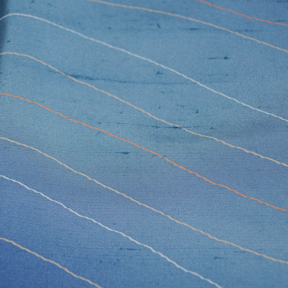> 着物セット 白山紬 洒落訪問着・洒落袋帯 2点 セット ぼかしに波線模様 青藤色系ぼかし Lサイズ 紬 中古 リサイクル着物 白山 きもの天陽