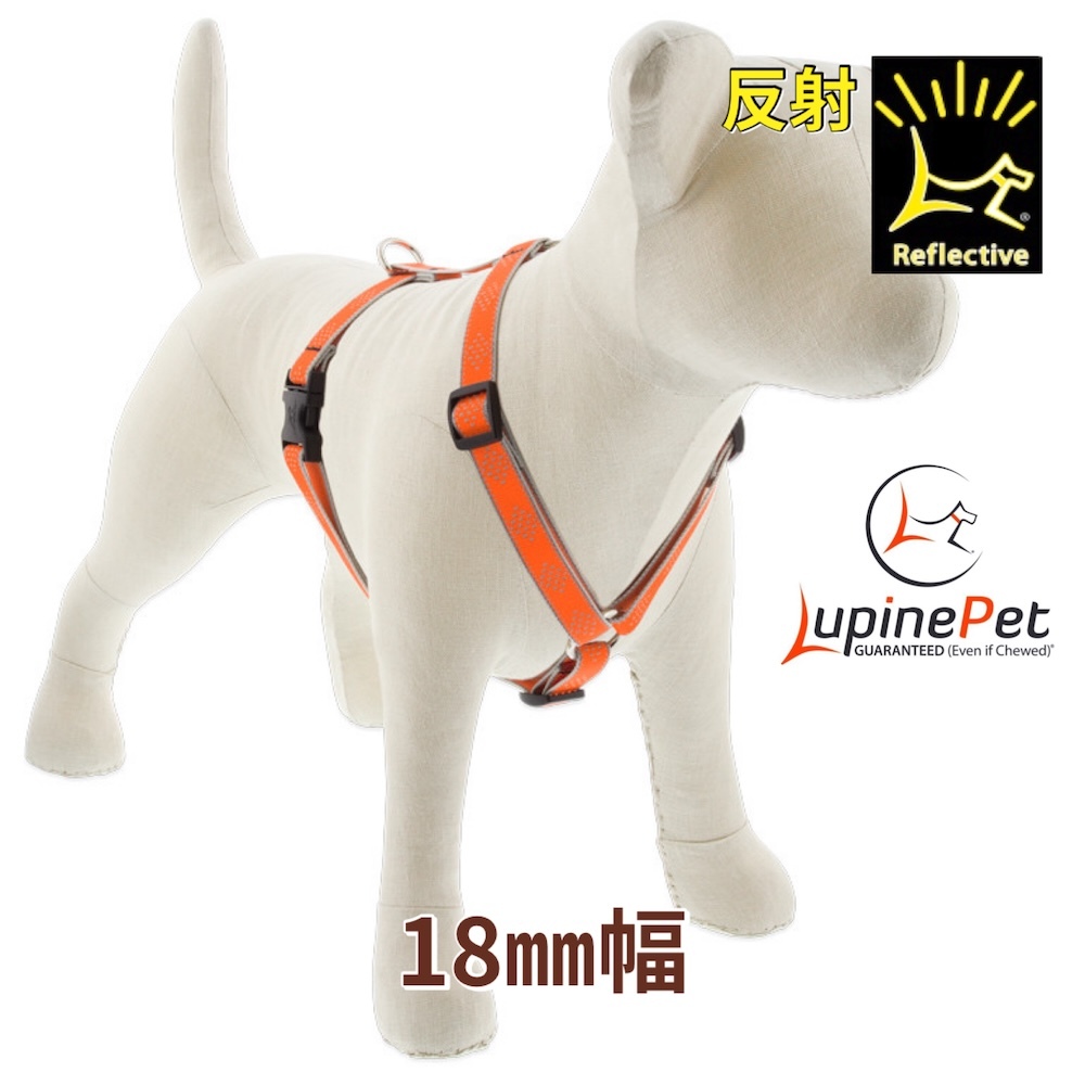 - ローマンハーネス・Mサイズ 18mm幅リフレクティブ反射・オレンジダイヤモンド柄 35-60cm LUPINEルパイン アメリカ製 軽量 丈夫 中型犬