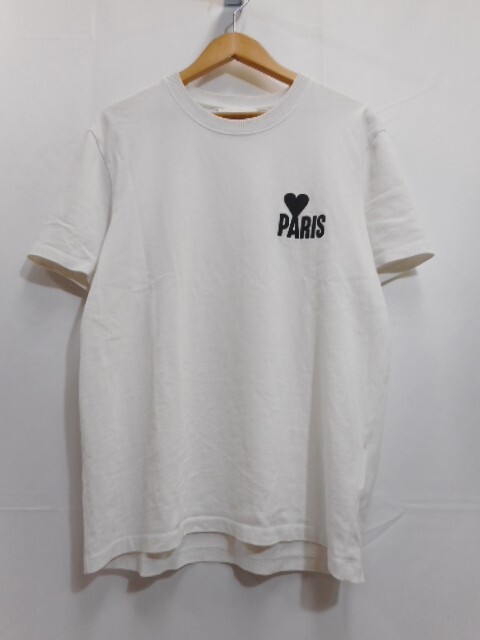 > 67 送60サイ 0609YD08 ami paris alexandre mattiussi アミパリス ロゴ刺繍半袖クルーネックTシャツ UTS014.701 ポルトガル製 サイズL 中古
