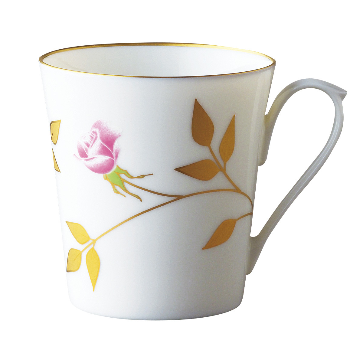 > 香蘭社 透き通るような真っ白なカップに薔薇を配した可憐な マグカップ 260ml 有田焼 日本製 縁には一つ一つ手描きで金線がまかれています