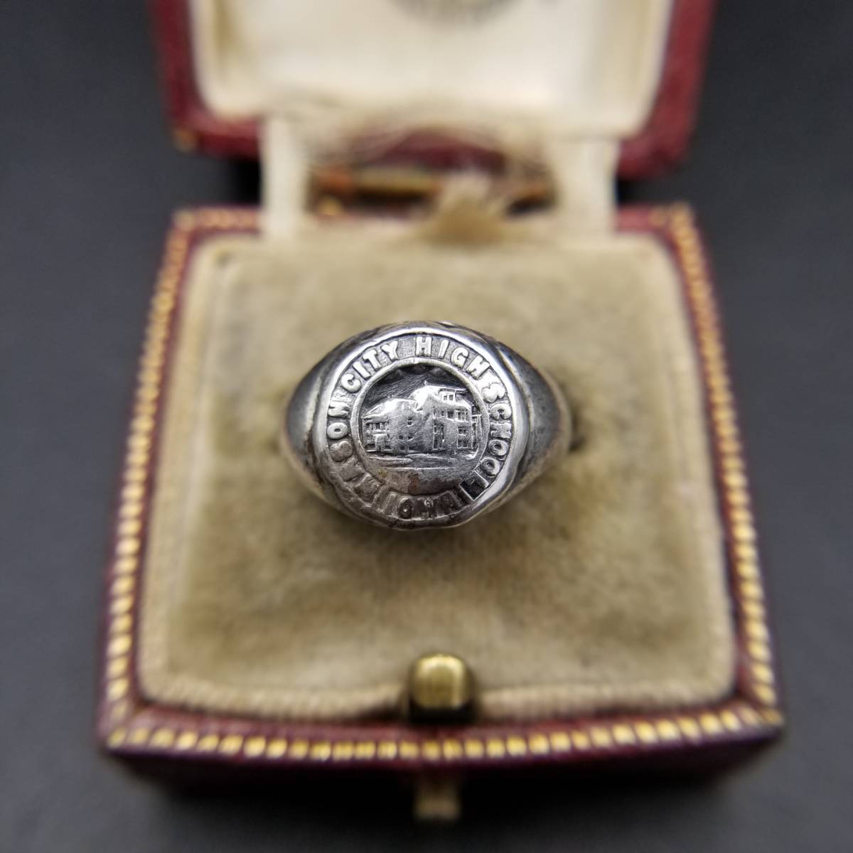 - 米国 ヴィンテージ クラスリング Mason City High School 紋章 カレッジ シグネット 925 シルバー リング 3.5g 指輪 ラウンド Y11-I