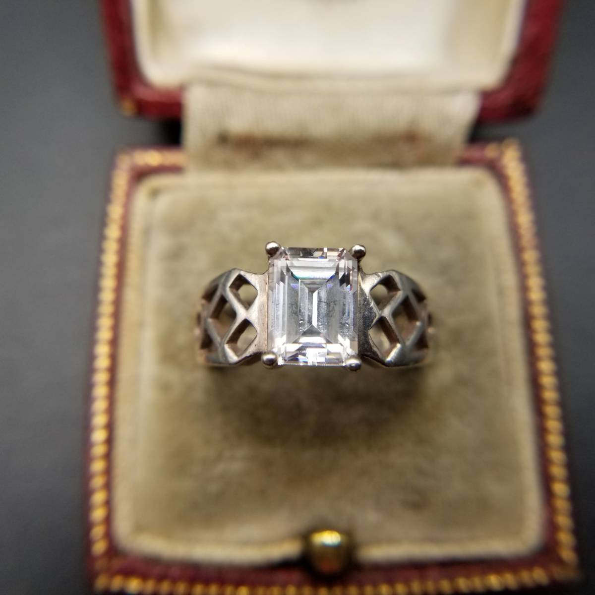 - キュービックジルコニア エメラルドカット 925シルバー アールデコ ヴィンテージ リング 銀 指輪 ビンテージ アクセサリー 透かし YMF4