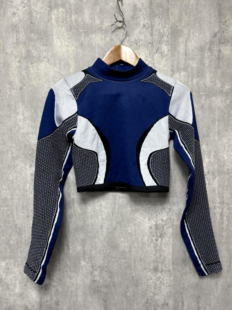 > ネコポスOK ZARA basic ザラ ベーシック クロップド丈 長袖ニット ニット セーター sizeM/青 ◆■ レディース