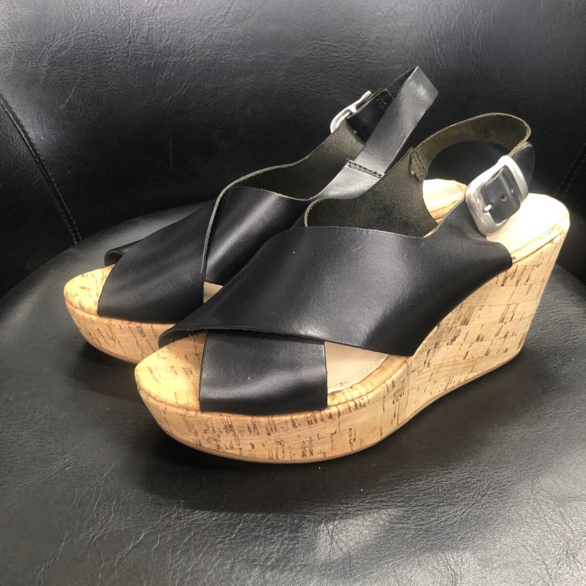 - WQ596●CORSO ROMA9:レザー ウェッジソールサンダル●37 1/2●ブラック コルソローマ