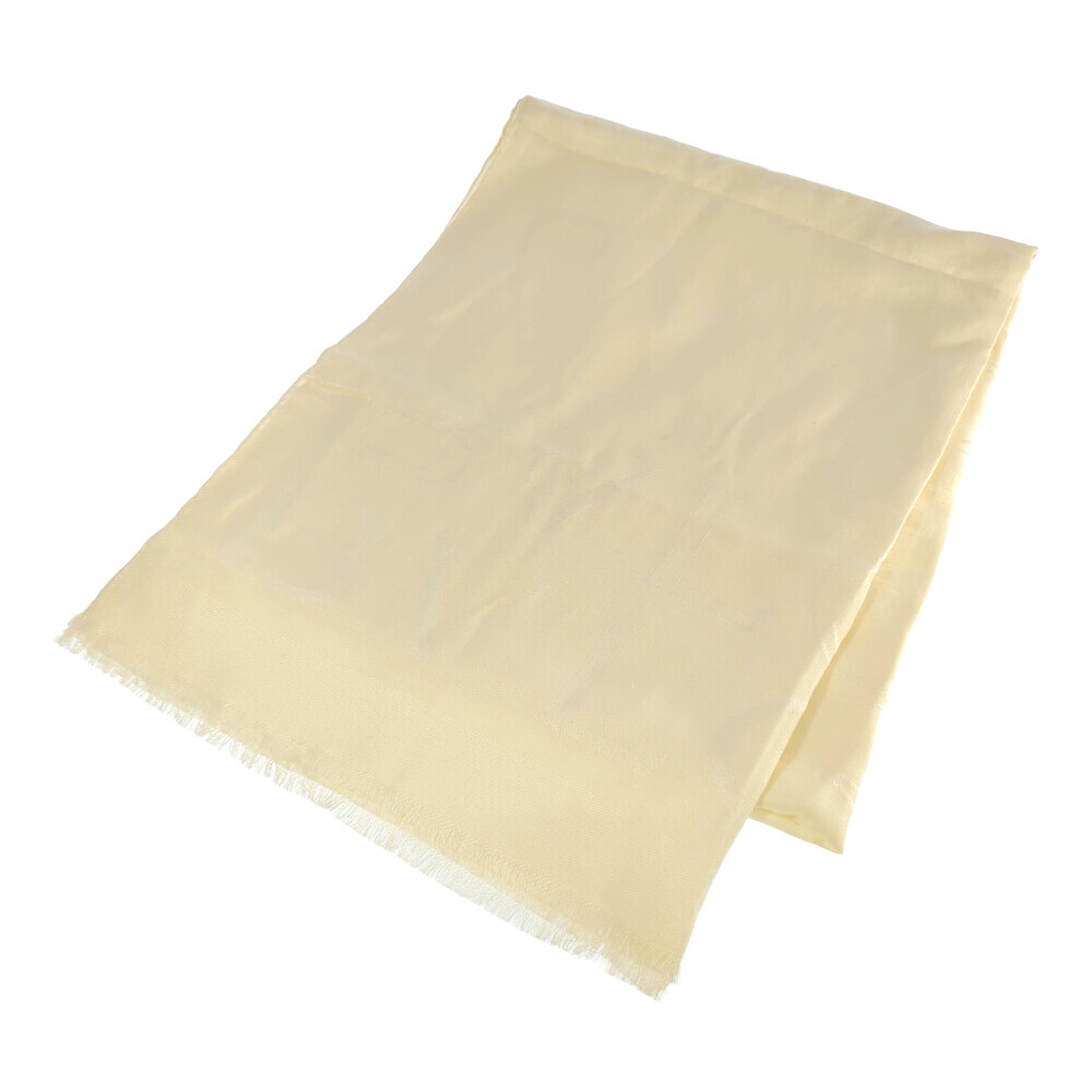 - BVLGARI ブルガリ ロゴ柄 シルク ウール スカーフ ストール ネックウェア/エクリュ/ショール/襟巻き■585551