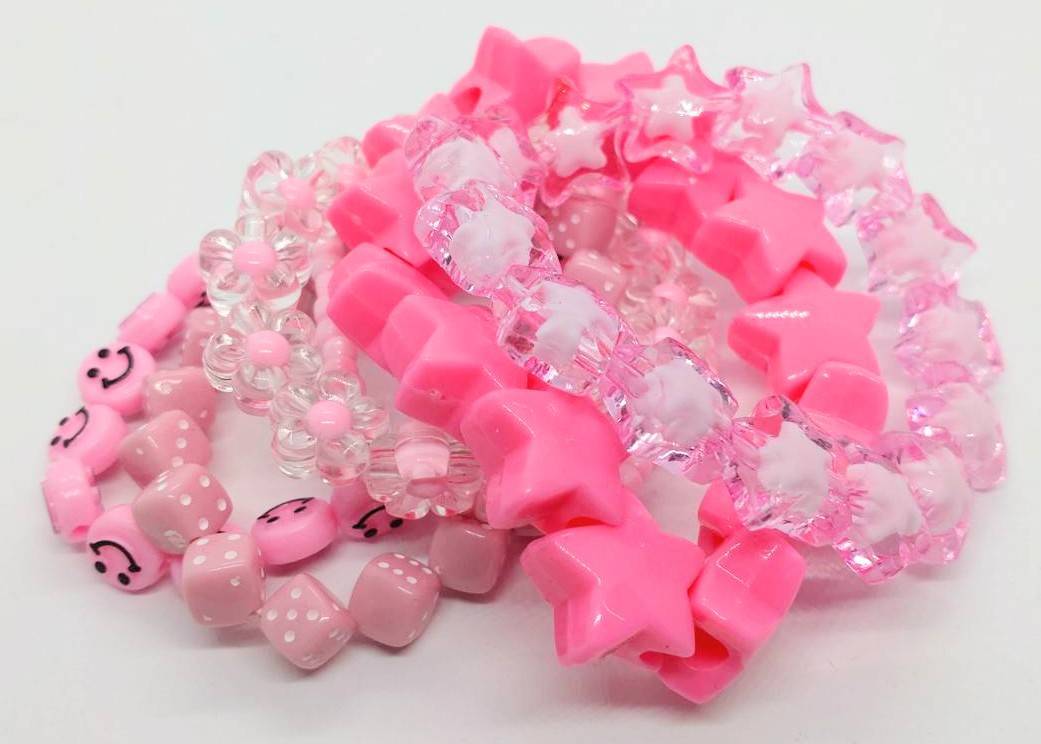 > 送料無料 カラービーズ 6連 ブレスレット ピンク バングル 腕輪 ロック パンク ストリート ゴスロリ ゴシック スマアク