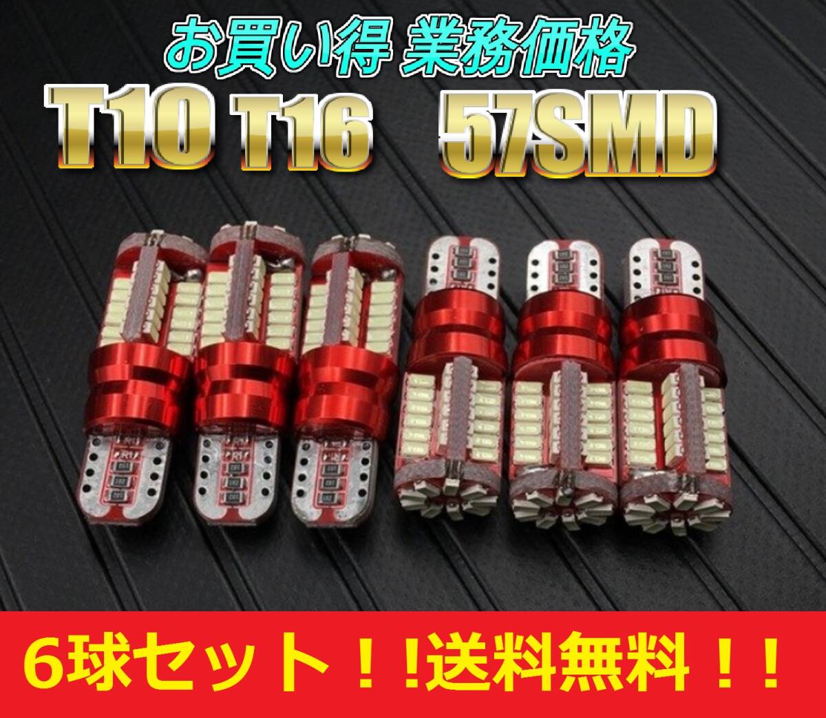 > ★ネコポス発送★送料無料★大好評★お買い得 爆光 T10 T16 LED 57SMD バルブ 6球セット バックランプ ポジション ナンバー灯
